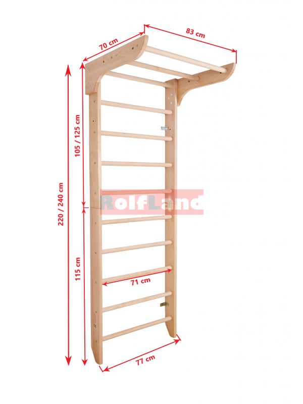 A bordásfal fokok kiváló minőségű bükkfából-, a függőleges vezetők fenyőfából készülnek. A fa festett és polírozott. 2 éves kortól gyermekek számára alkalmas, de felnőttek számára is használható.
