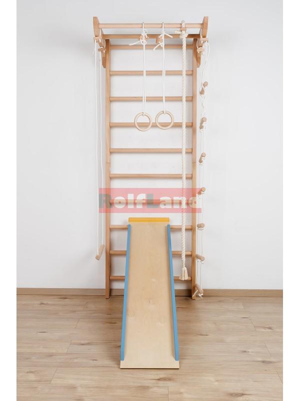 A bordásfal fokok kiváló minőségű bükkfából-, a függőleges vezetők fenyőfából készülnek. A fa festett és polírozott. 2 éves kortól gyermekek számára alkalmas, de felnőttek számára is használható.