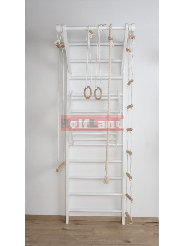 Stílusos és funkcionális edzőeszközt keresel, amely örömet okoz a gyerekeknek és a felnőtteknek? Fehér rúdunk kiegészítőkkel ötvözi a kiváló minőséget, az időtlen esztétikát és a teljes sokoldalúságot! Európában készült természetes bükkfából , gyermekbarát HIDROHEL bevonatokkal festve, modern fehér színben, amely tökéletesen illeszkedik bármilyen belső térbe. Kompakt kialakításának köszönhetően ideális bármilyen otthonba - gyerekszobába, játszószobába vagy nappaliba. Egyetlen termékkel egy edzőállomást kapsz felnőtteknek és egy mászókát a gyerekeknek .