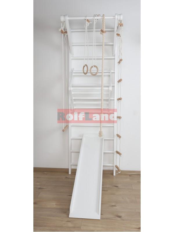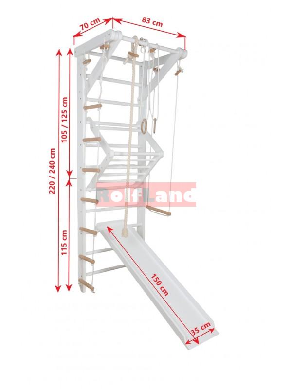 Stílusos és funkcionális edzőeszközt keresel, amely örömet okoz a gyerekeknek és a felnőtteknek? Fehér rúdunk kiegészítőkkel ötvözi a kiváló minőséget, az időtlen esztétikát és a teljes sokoldalúságot! Európában készült természetes bükkfából , gyermekbarát HIDROHEL bevonatokkal festve, modern fehér színben, amely tökéletesen illeszkedik bármilyen belső térbe. Kompakt kialakításának köszönhetően ideális bármilyen otthonba - gyerekszobába, játszószobába vagy nappaliba. Egyetlen termékkel egy edzőállomást kapsz felnőtteknek és egy mászókát a gyerekeknek .